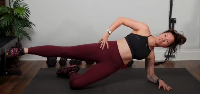 Next, we move into floor-based exercises where the emphasis is on learning how to coordinate breath with movement. Gina explains how to incorporate that breathing technique into core exercises like side-lying hip lifts and bird dogs. These positions allow you to focus on activating the core muscles while minimizing pressure on your back. The floor work also emphasizes controlled movements, such as pushing your hips forward in side-lying extensions and extending one arm and leg at a time in bird dogs, all while engaging the core and maintaining spinal alignment.