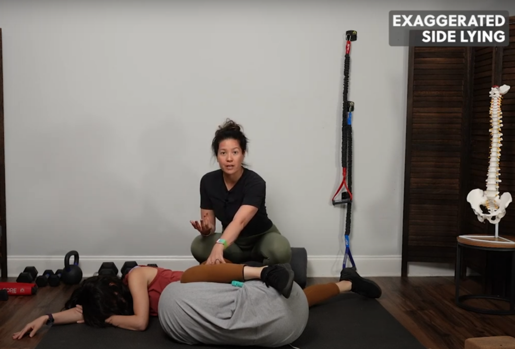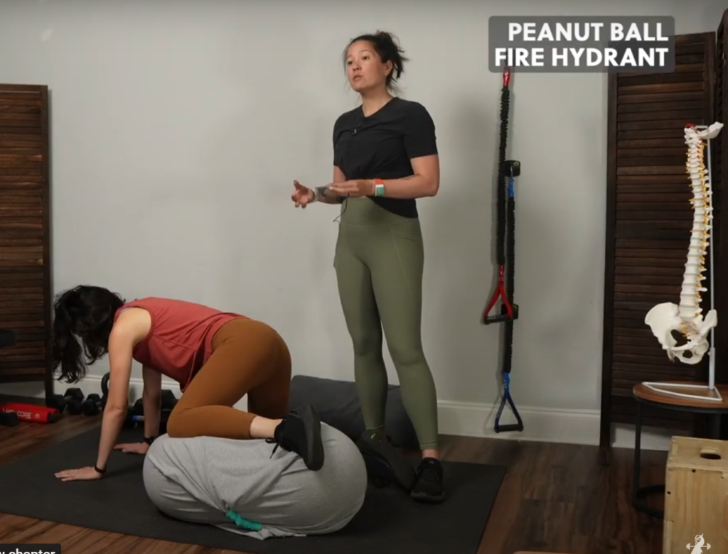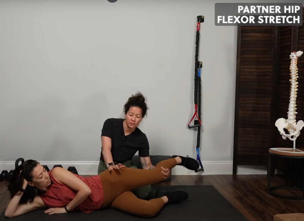 - Use a peanut ball for support, allowing your partner to pull your leg gently to create a deeper stretch in the groin.