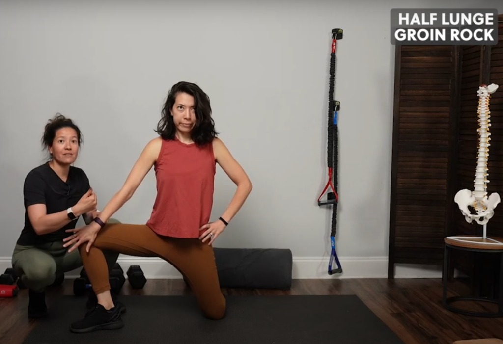 - You can rock in and out of this position for a gentle stretch in the upper groin area.