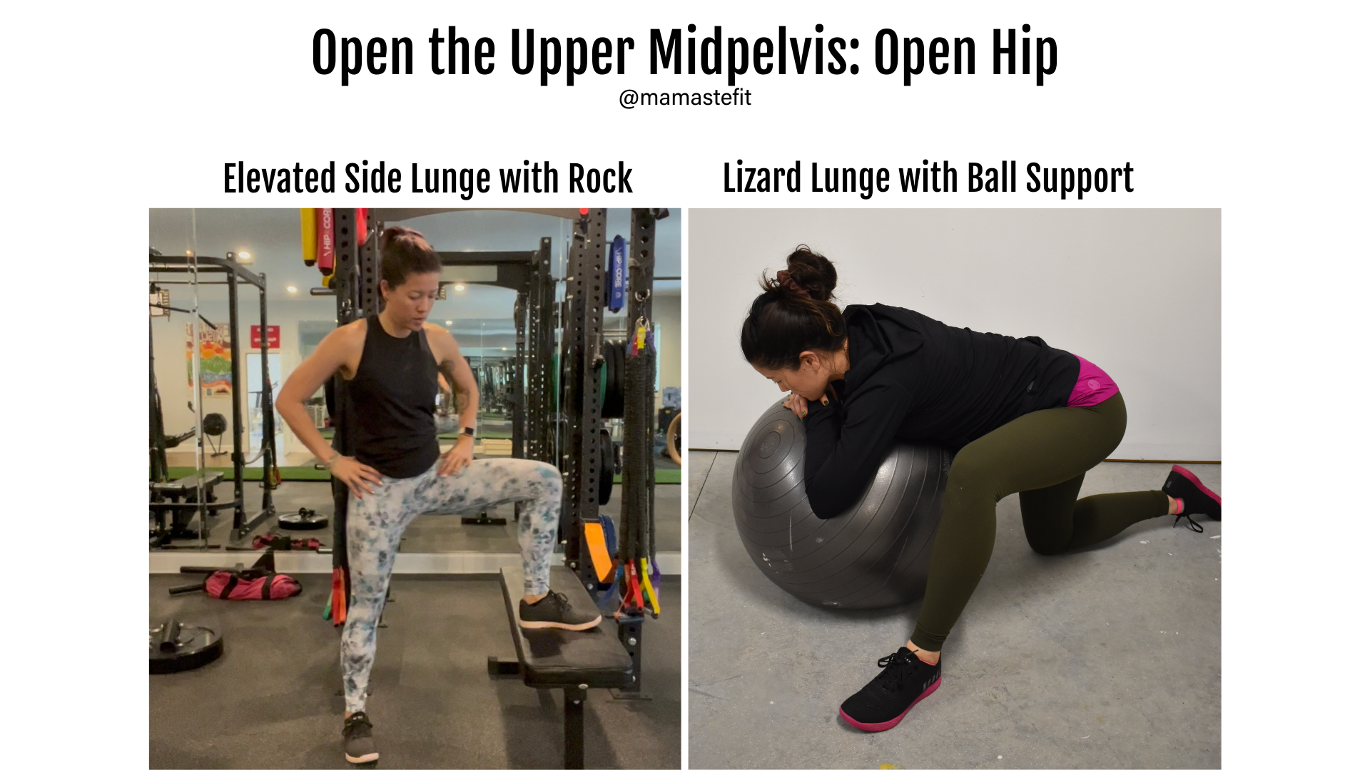 Helpful tips when driving the hip crease back is to think: drive the femur back into the socket; put weight into that leg (stance leg tends to internally rotate); and rotate the upper body towards the internally rotated leg. Watch the video below for some tips on how to create more space at the lower midpelvis!